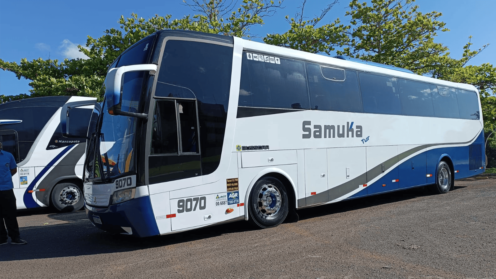 ÔNIBUS EXECUTIVO - 46 LUGARES - Semi Leito, Ar Condicionado, TV, DVD, Microfone, Tomadas USB e Frigobar.